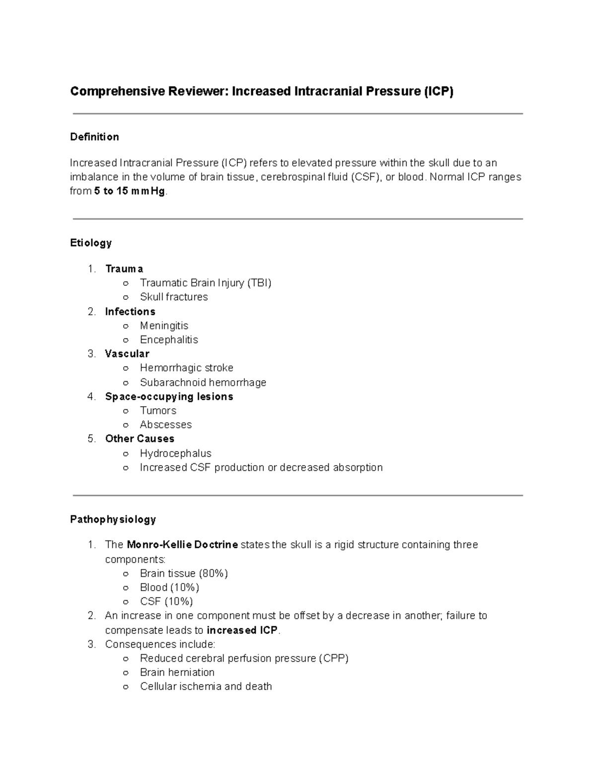 Comprehensive Review Increased Intracranial Pressure (ICP) Study Guide