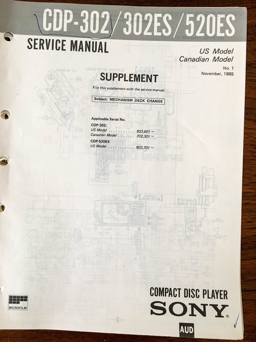 Sony CDP302 302ES 520ES Service Manual Supplement *Original* Vintage