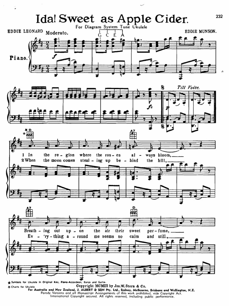 Ida, Sweet As Apple Cider (Eddie Leonard, Eddie Munson) Piano Sheet
