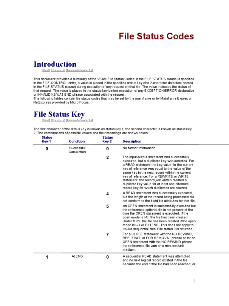 VSAMFile Status Codes PDF Computer File Input/Output