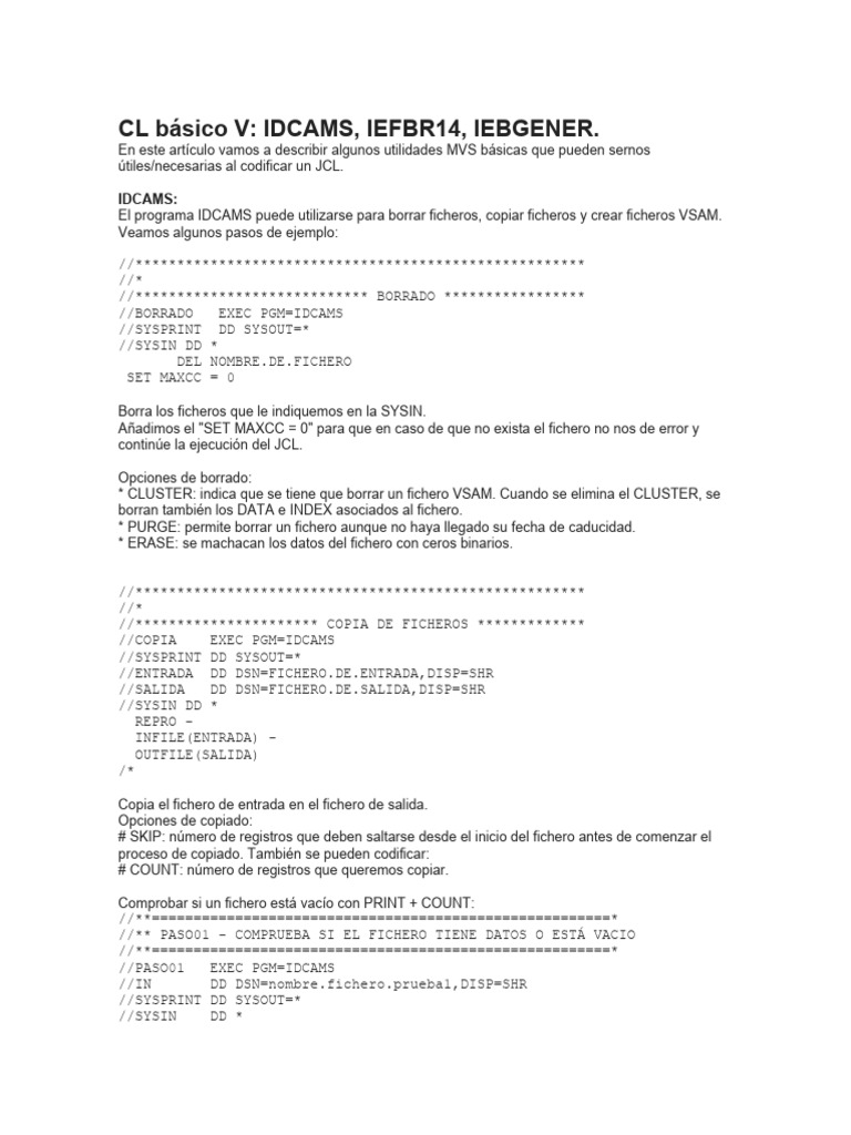 Utilidades MVS IDCAMS, IEFBR14, IEBGENER PDF