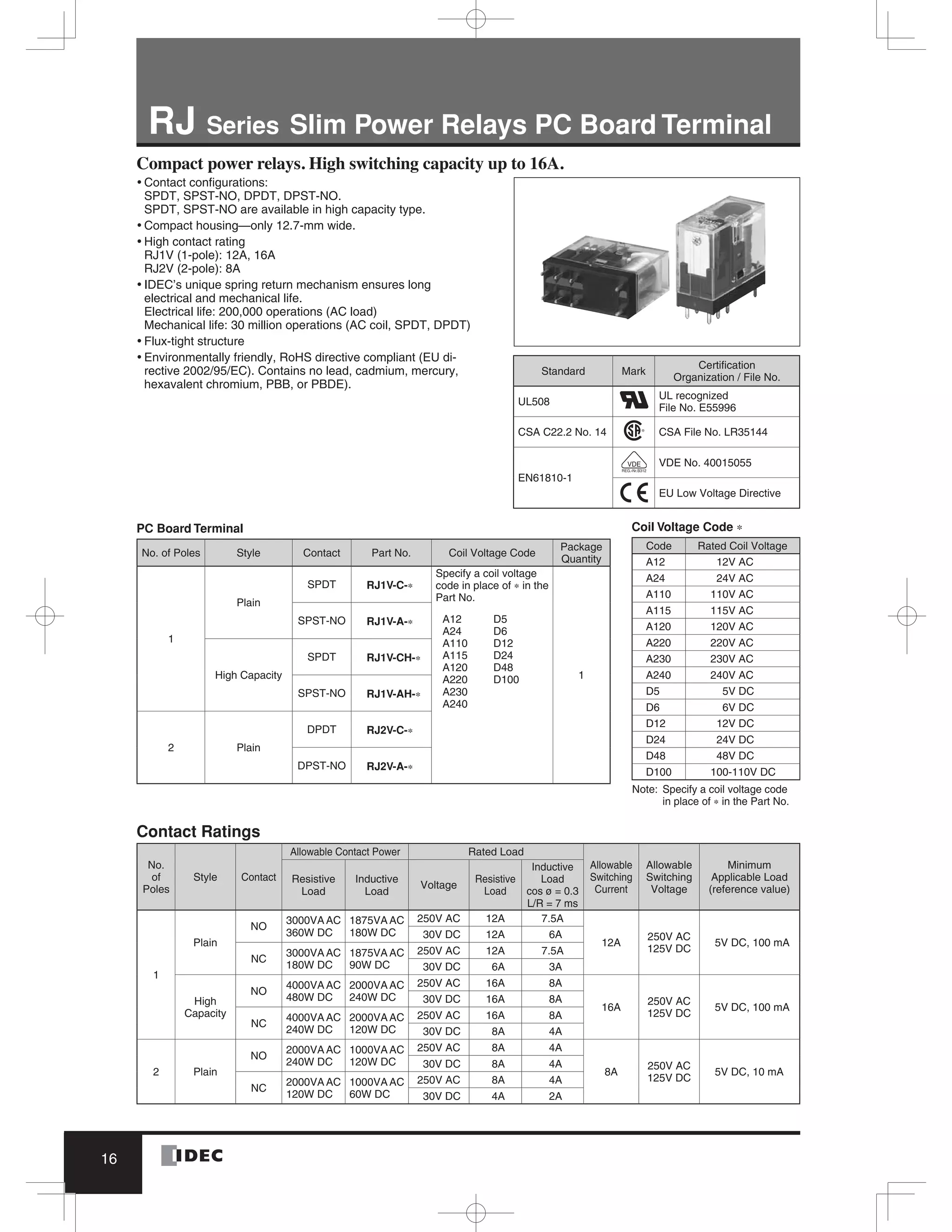 Catalog Rơ le RJ IDEC Relay Giải pháp tự động hóa công nghiệp