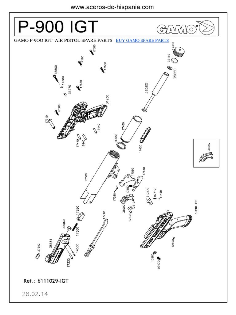 Breakdown Spare Parts Gamo P900 IGT Air Pistol PDF