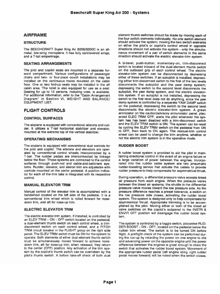 Super King Air 200Systems PDF PDF Aircraft Configurations Wing
