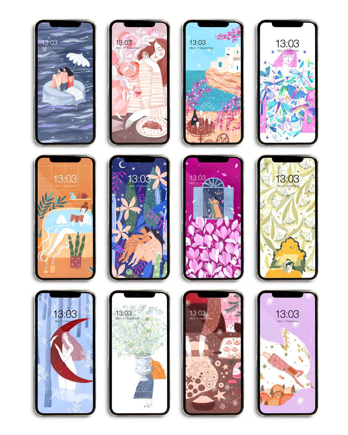 Custom Illustrated Phone Wallpaper Handdrawn Digital Download