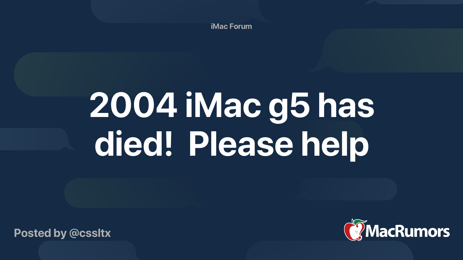 2004 iMac g5 has died! Please help MacRumors Forums