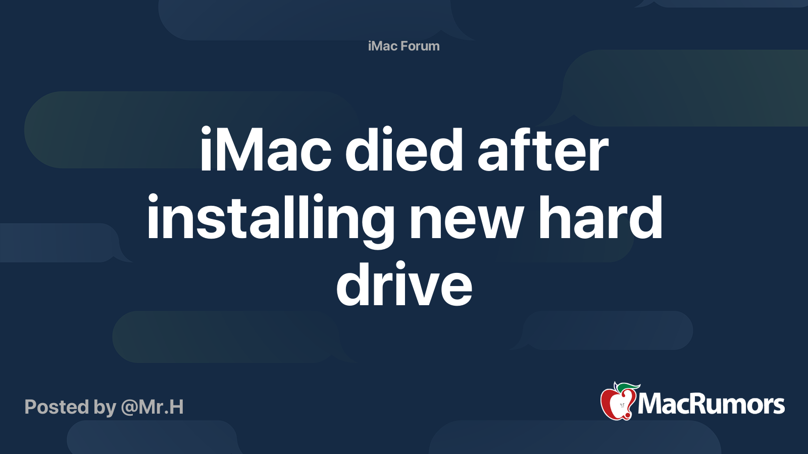 iMac died after installing new hard drive MacRumors Forums
