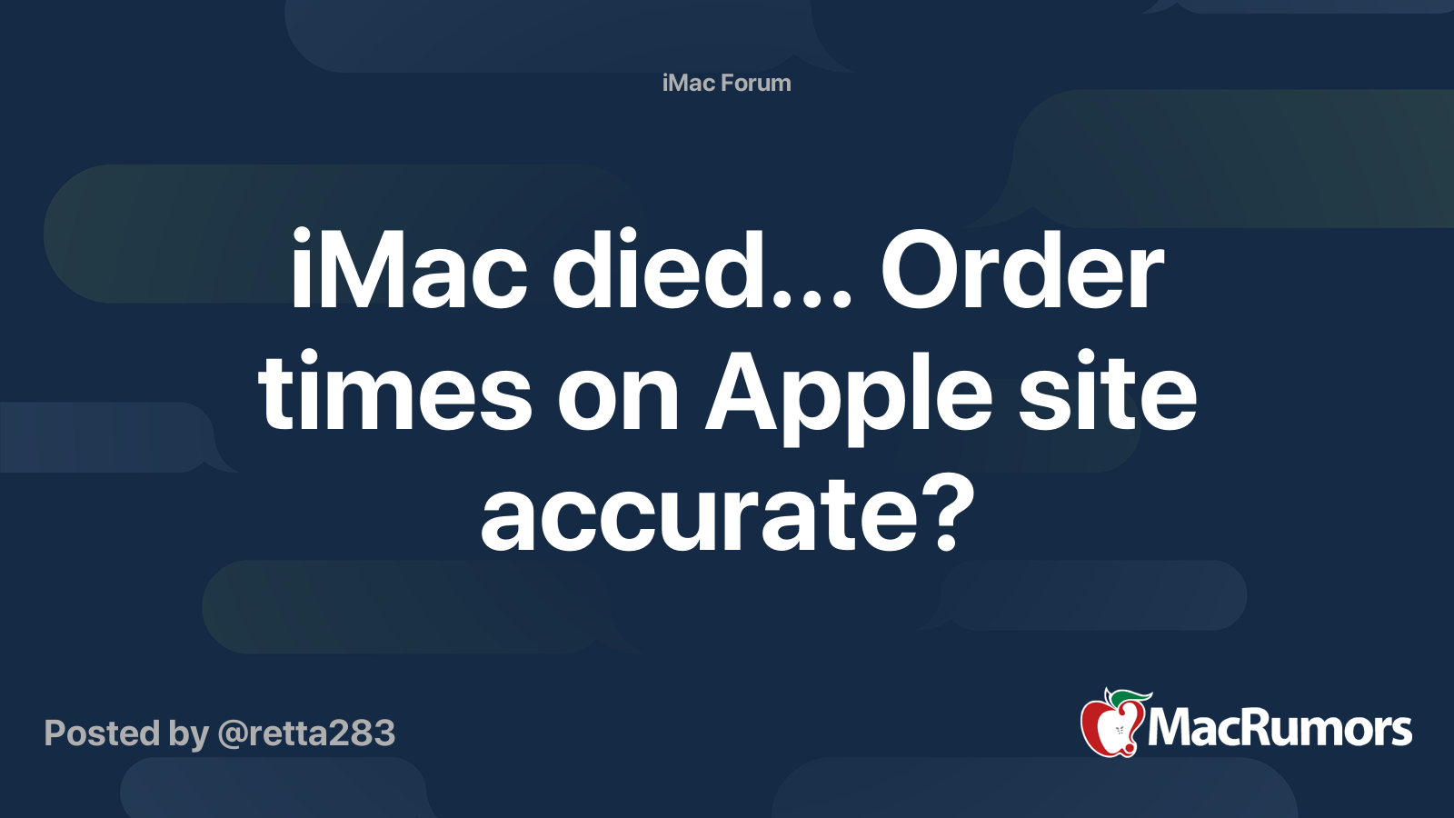 iMac died... Order times on Apple site accurate? MacRumors Forums