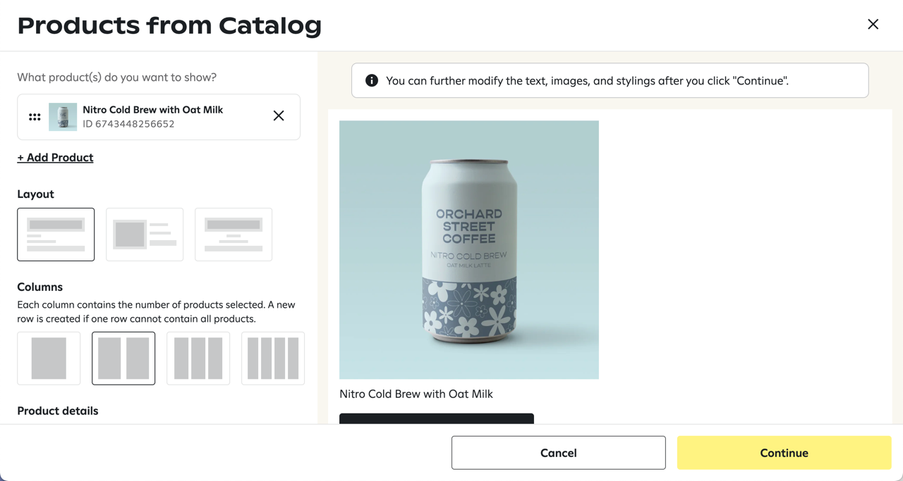 Add a product from your catalog to your email Attentive
