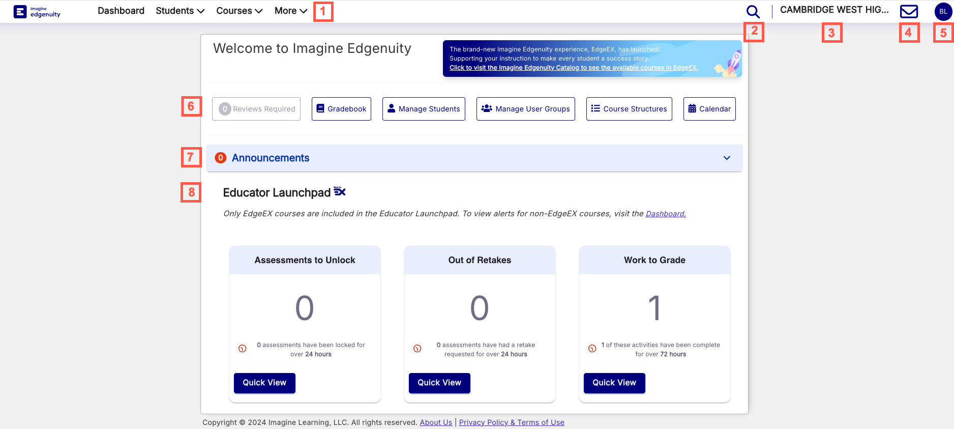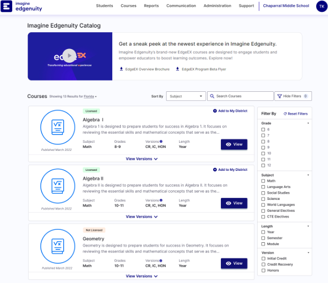 EdgeEX — Previewing a course in the Imagine Edgenuity, District, and