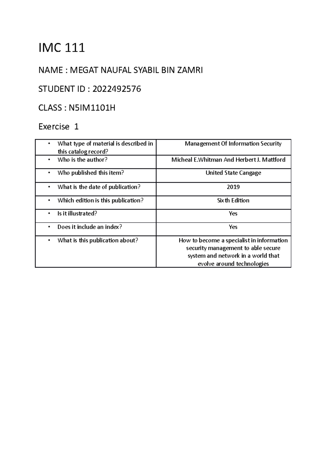 IMC 111 Week 3 Catalog ( Megat) IMC 111 NAME MEGAT NAUFAL SYABIL