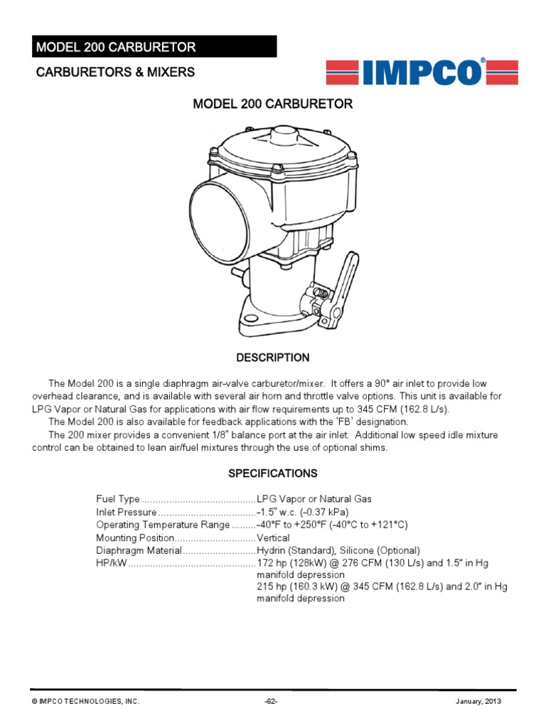 IMPCO CA200 Carburetor PDF Carburetor Throttle
