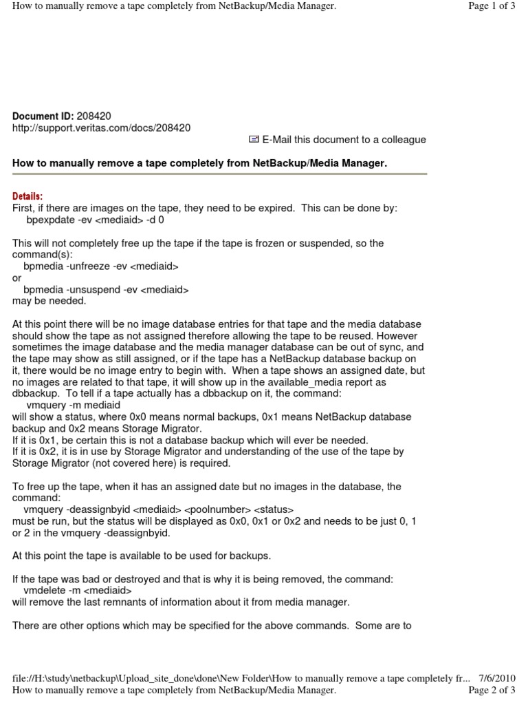 How To Manually Remove A Tape Completely From NetBackupMedia Manager