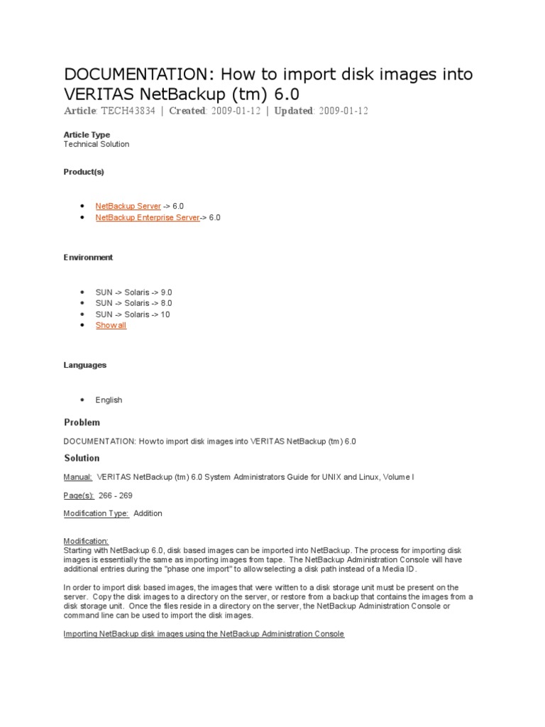 How To Import Disk Images Into VERITAS NetBackup (TM) 6.0 PDF