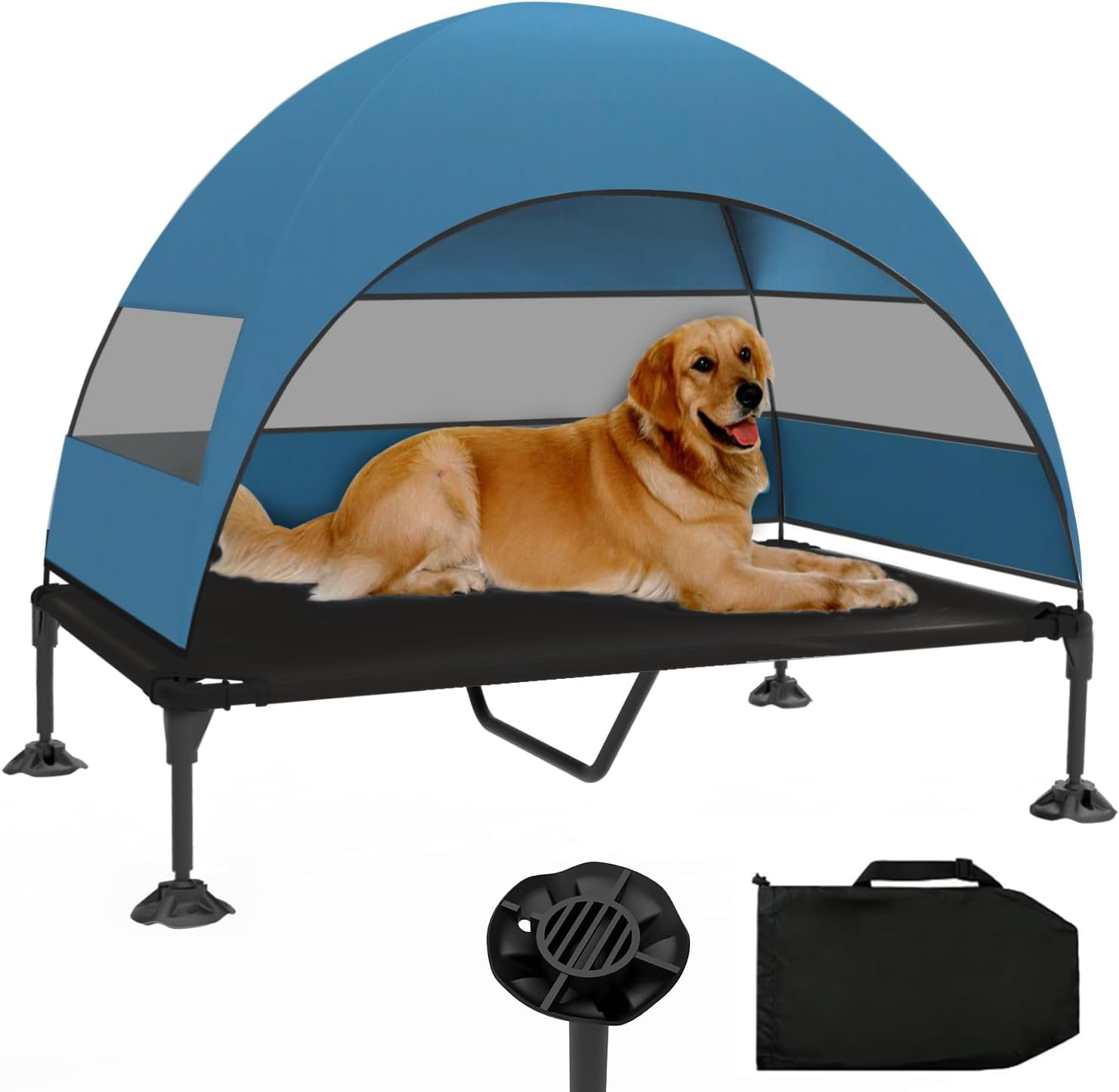 Upgraded Elevated Dog Bed with Canopy, Portable Raised Outdoor Dog Bed