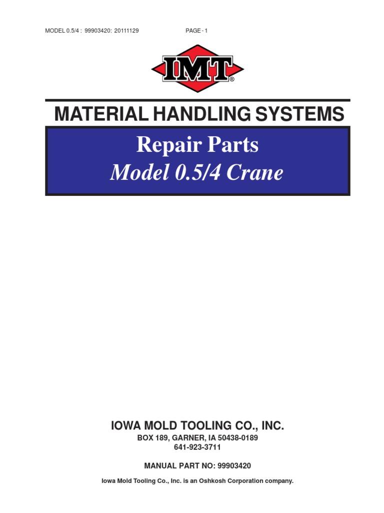 IMT Iowa Mold Tooling 3820 Crane Specifications & Parts Catalog Manual