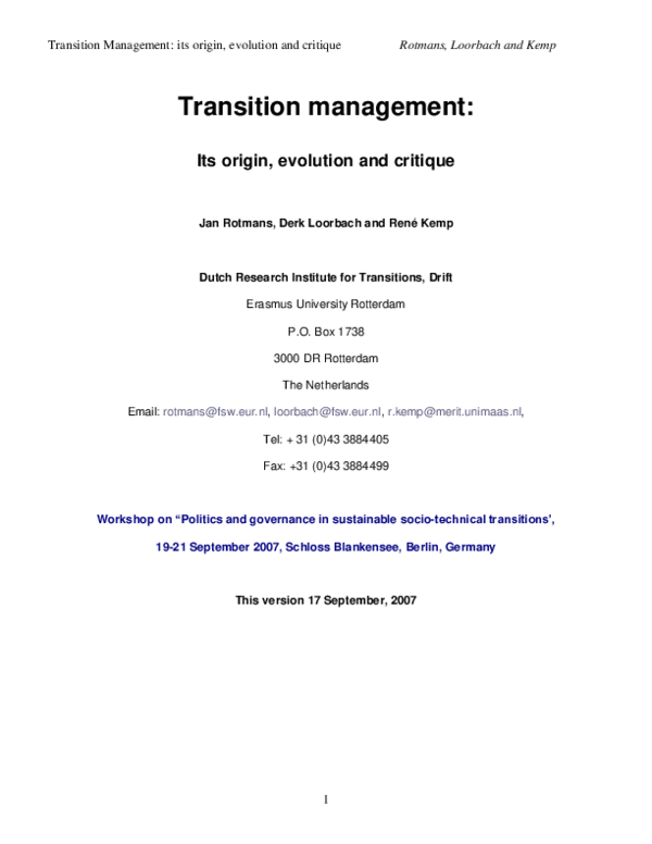 (PDF) Transition Management Taking Stock from Governance Experimentation