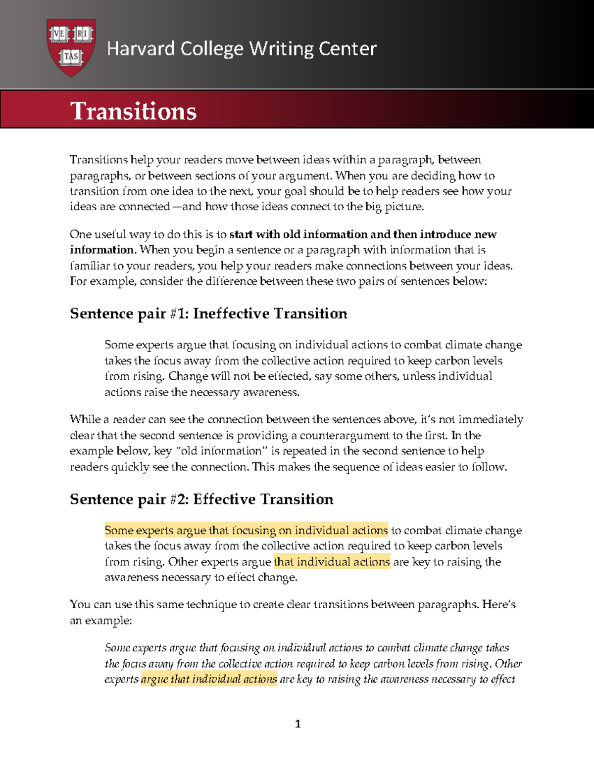Transitions godzh sd yfv Harvard College Writing Center 1