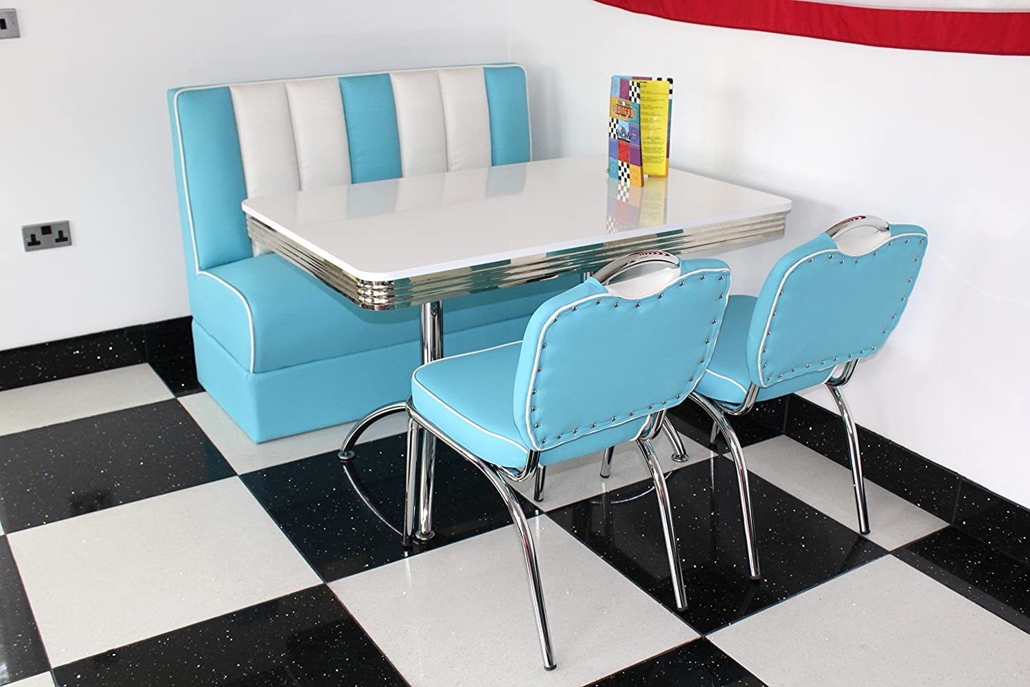 American Diner Furniture 50s Style Retro White Table, 1 Booth and 2