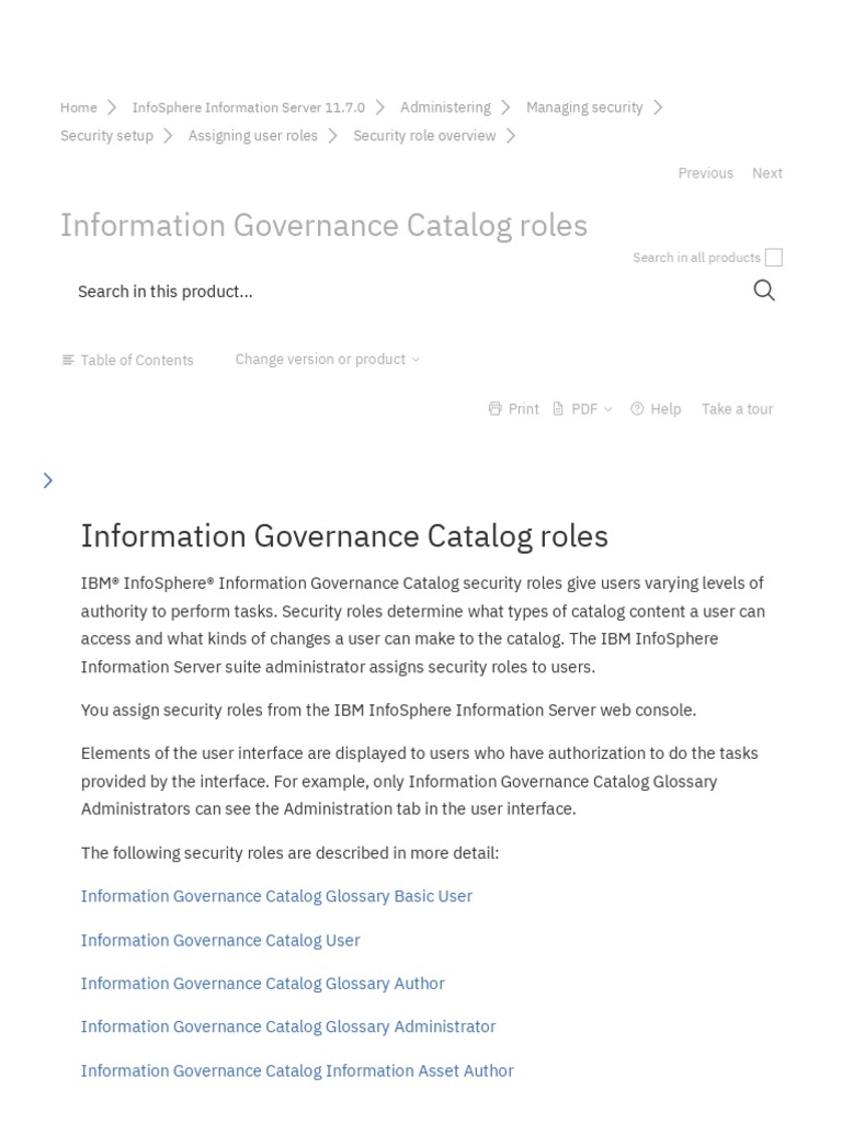 Information Governance Catalog Roles PDF Information Governance