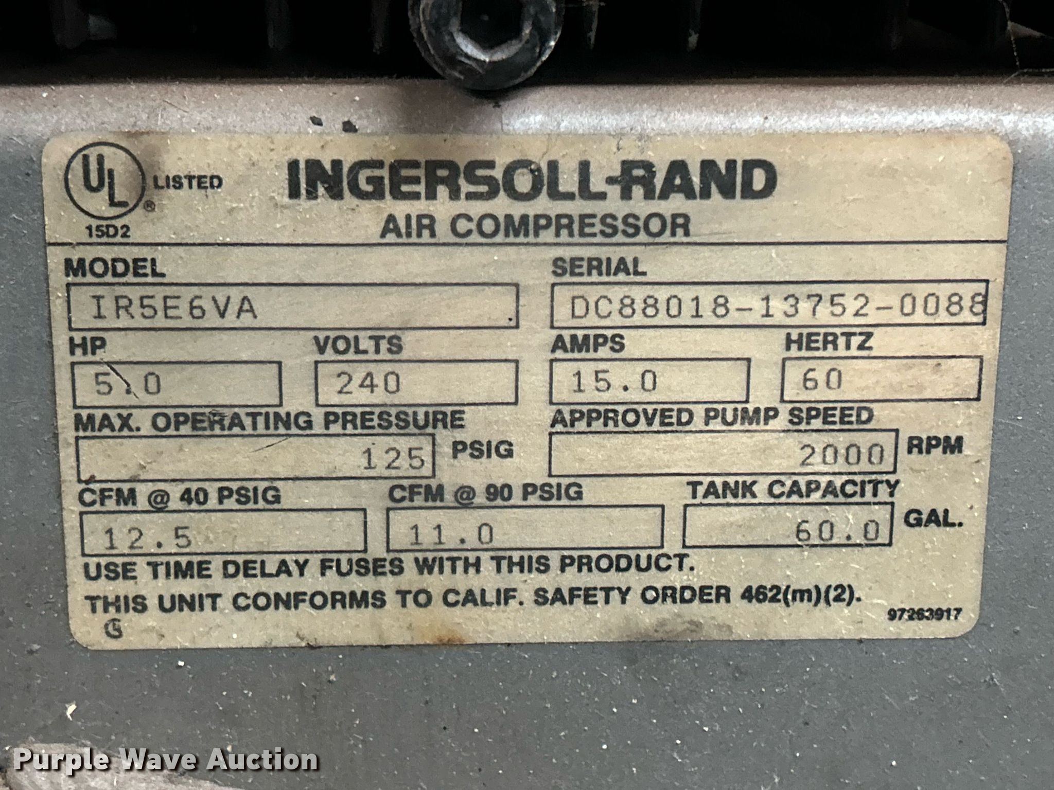 Ingersoll Rand IR5E6VA air compressor in Hudson, IA Item MO9101 sold