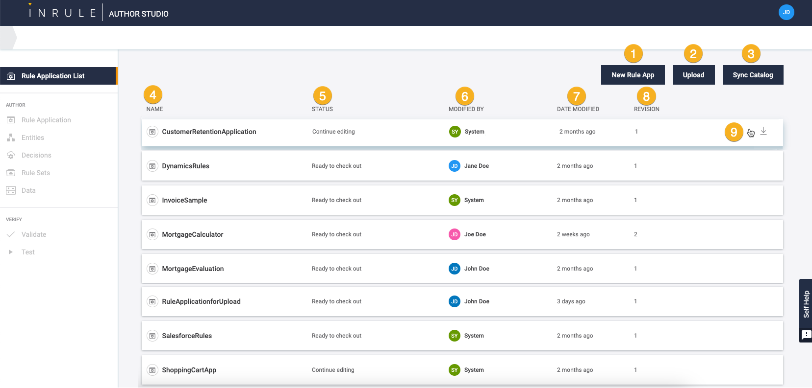 Rule Application List InRule Technology