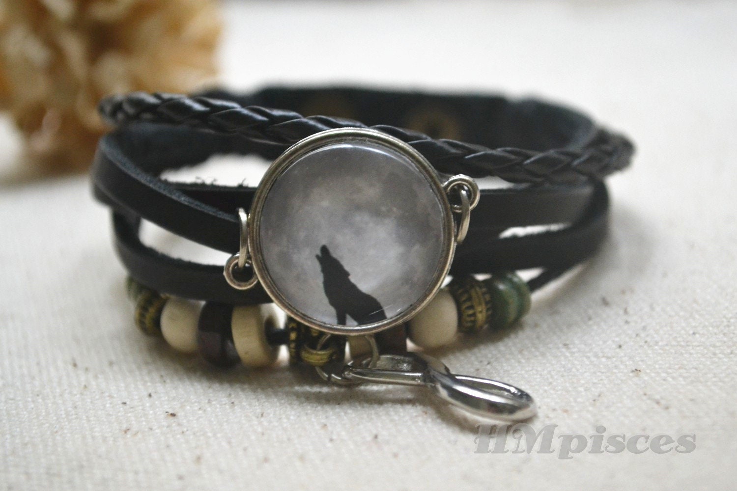 Full Moon Bracelethowling Wolf Bracelet Wolf Woven Etsy