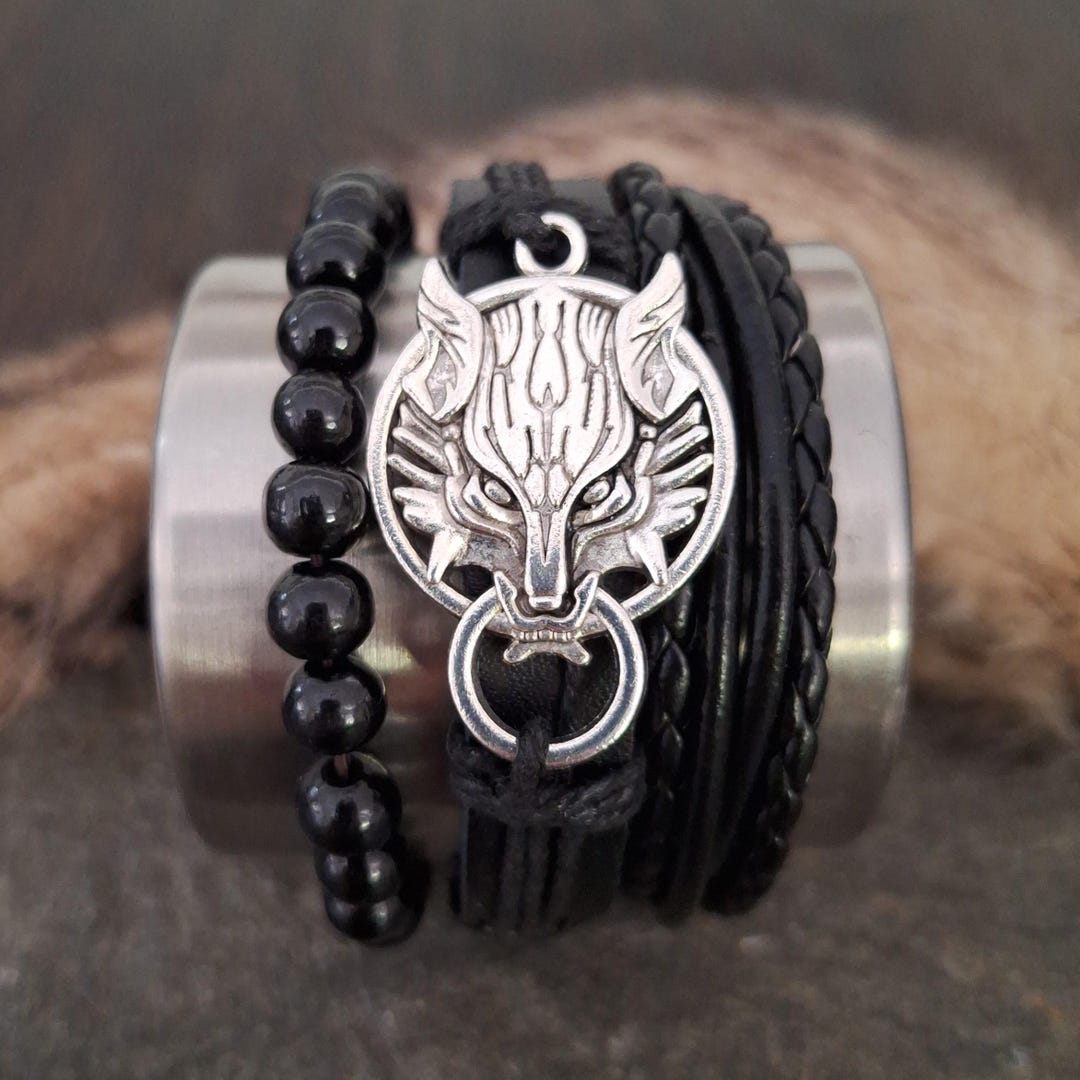 Viking Wolf Bracelet Set, Wolf Jewelry, Celetic Bracelets, Cosplay Wolf