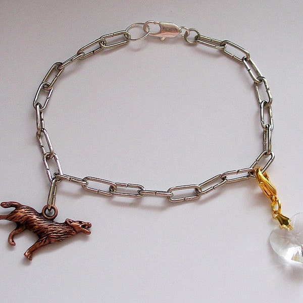Twilight Charm Bracelet Swarovski Heart and Wolf Etsy