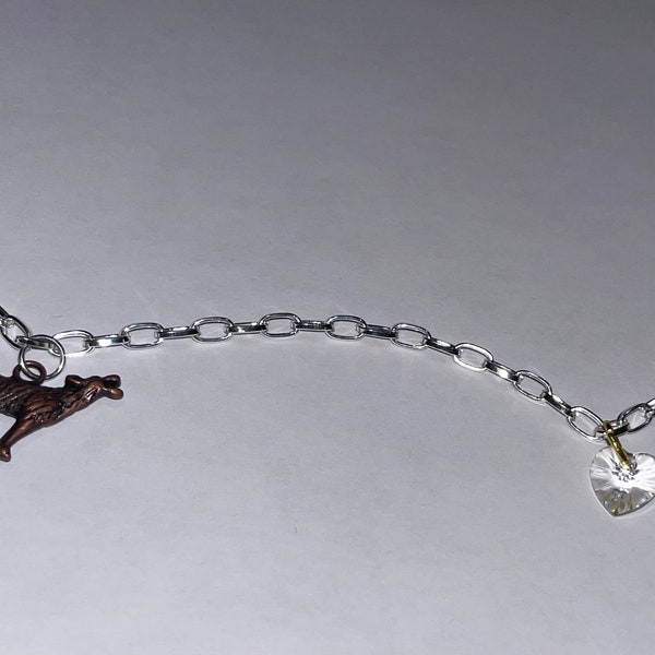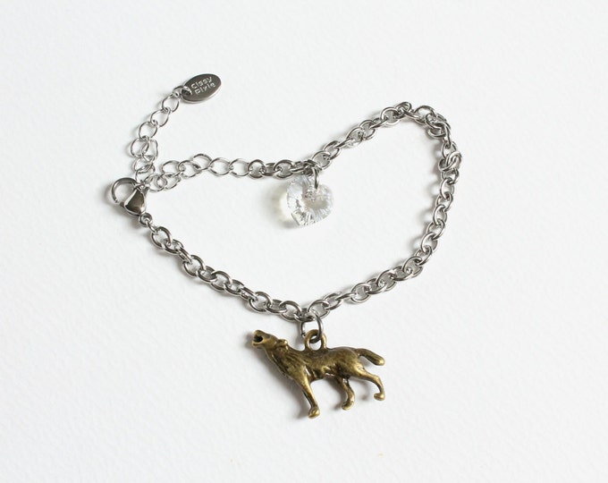 Wolf Heart Charm Bracelet, Crystal Heart Bracelet, Graduation Bracelet