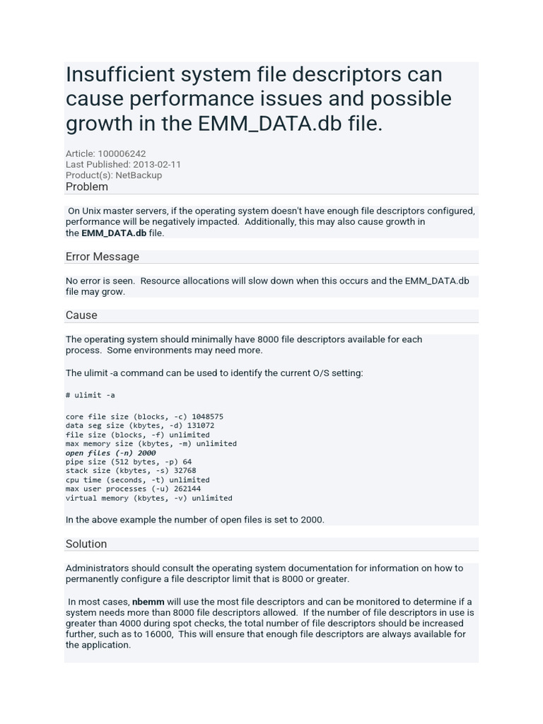 Insufficient System File Descriptors Can Cause Performance Issues and