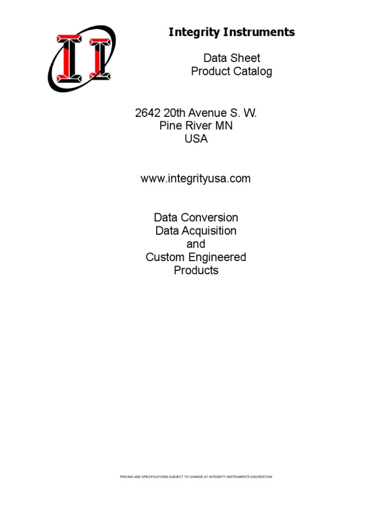 Integrity Instruments CATALOG PDF Physical Layer Protocols