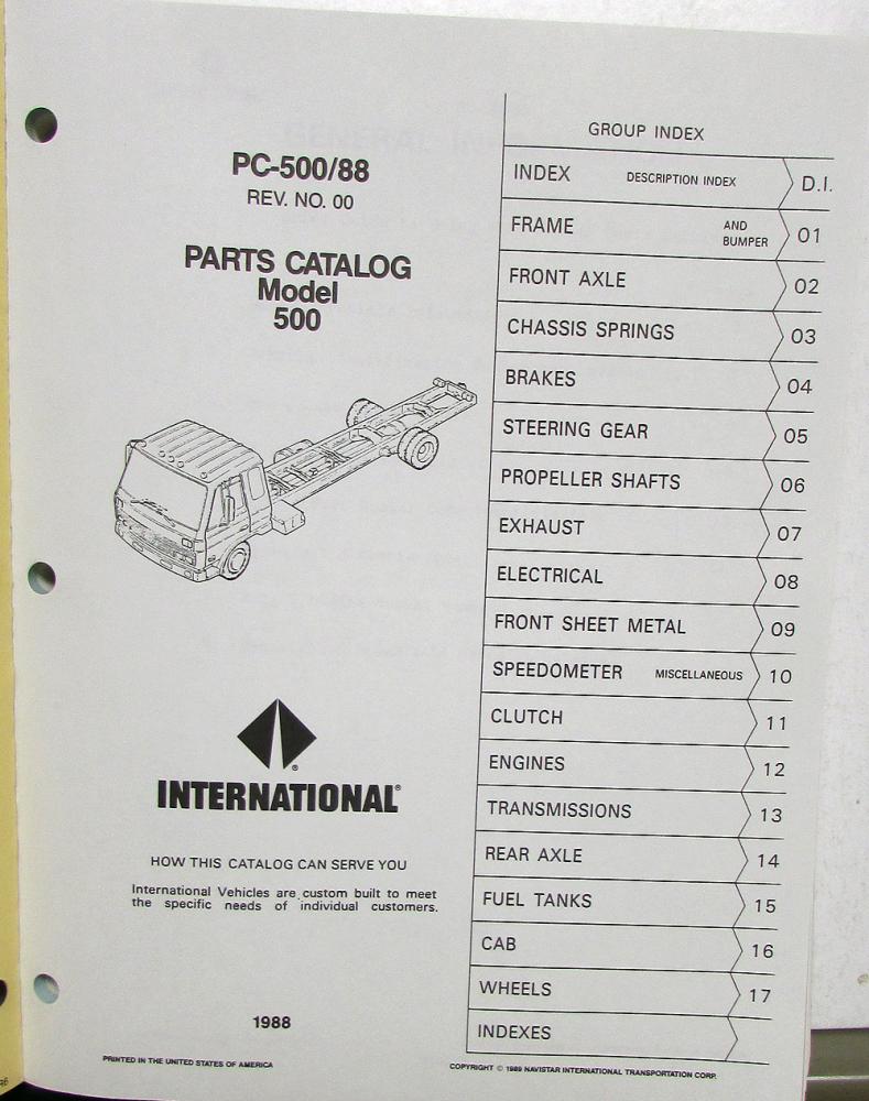 1988 International Truck 500 Models PC500/88 Parts Catalog Manual