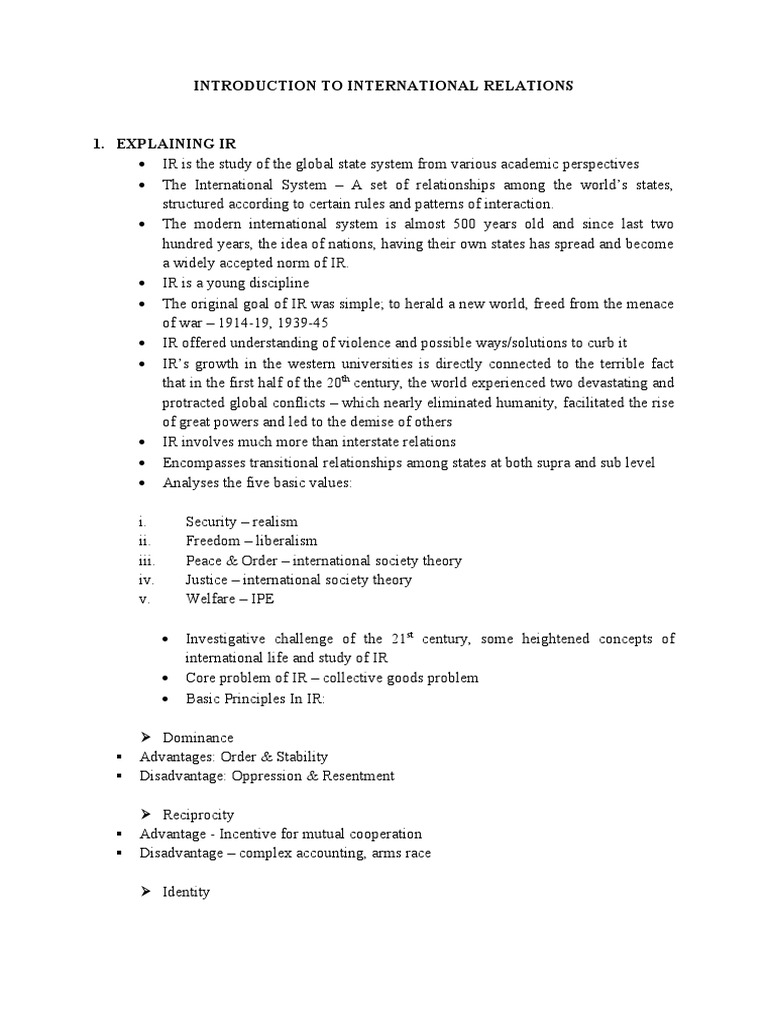 Introduction IR PDF International Relations Political Science
