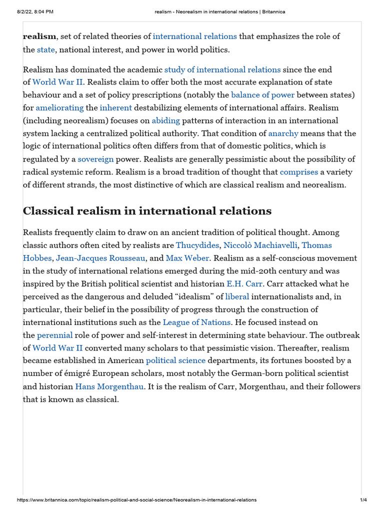 Realism 1 PDF International Relations Political Science