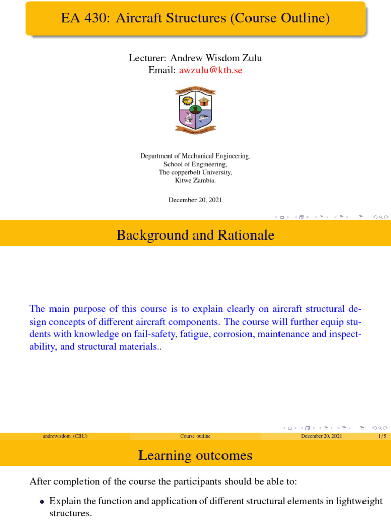EA 430 Aircraft Structures Course Outline PDF Beam (Structure