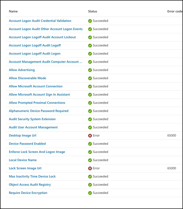Settings Catalog Troubleshooting the Error Code 65000