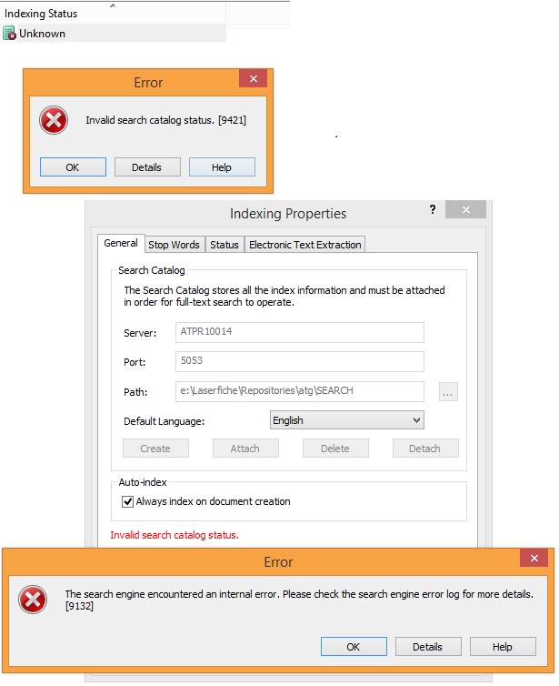 error 9421 Invalid search catalog status ? Laserfiche Answers