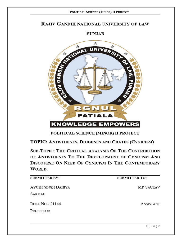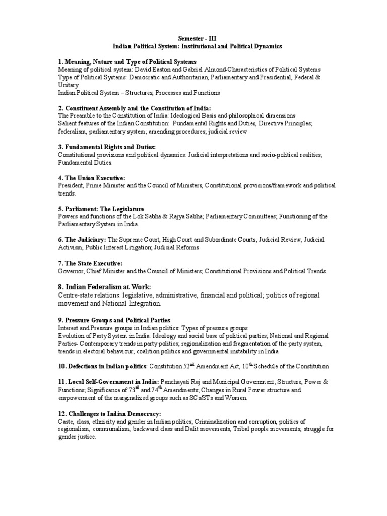 BA 1st Semester Political Science Minor Political Science BA 1st