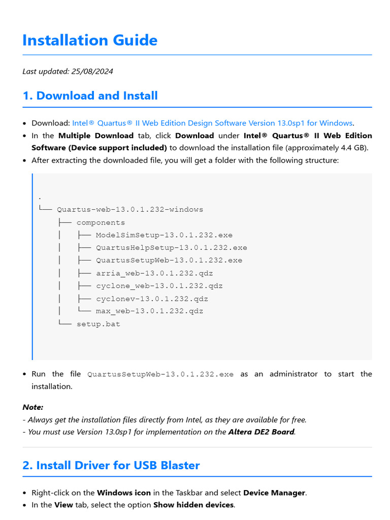 hướng dẫn cài đặt QUARTUS 13.0 và USB BLASTER PDF Usb Device Driver