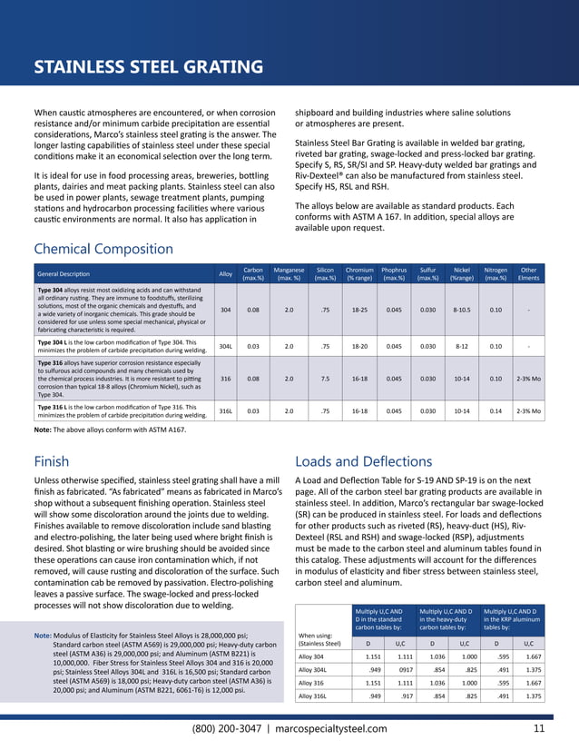 AMICO Bar Grating Catalog PDF Young's Modulus Stainless Steel