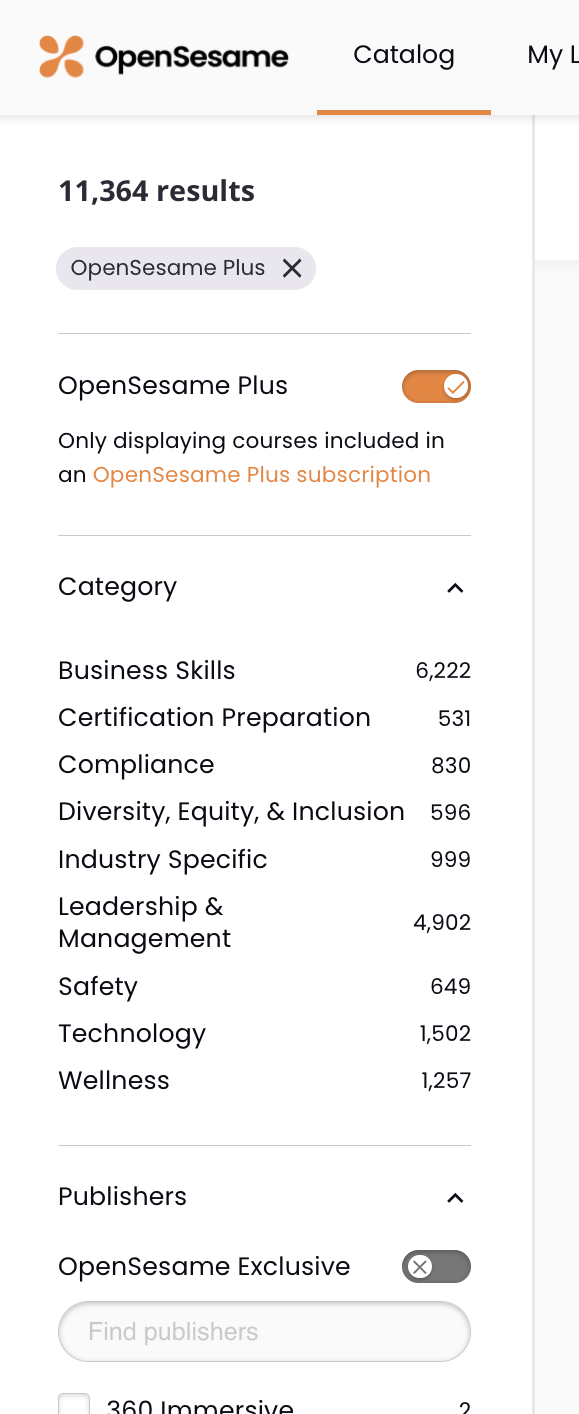 How to use the OpenSesame catalog’s search tools OpenSesame Support