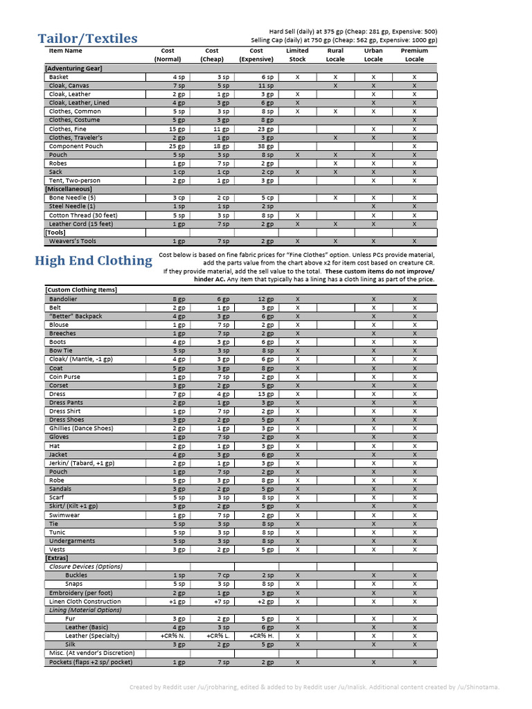 Massive D&D city shops, businesses, merchandise, prices, weights r/DnD