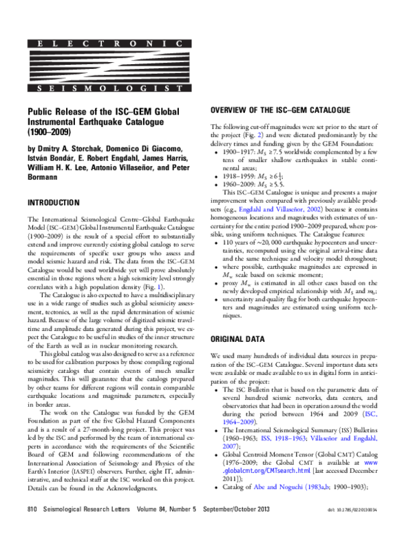 (PDF) ISCGEM Global Instrumental Earthquake Catalogue (19002009), GEM