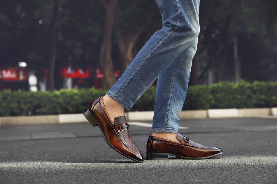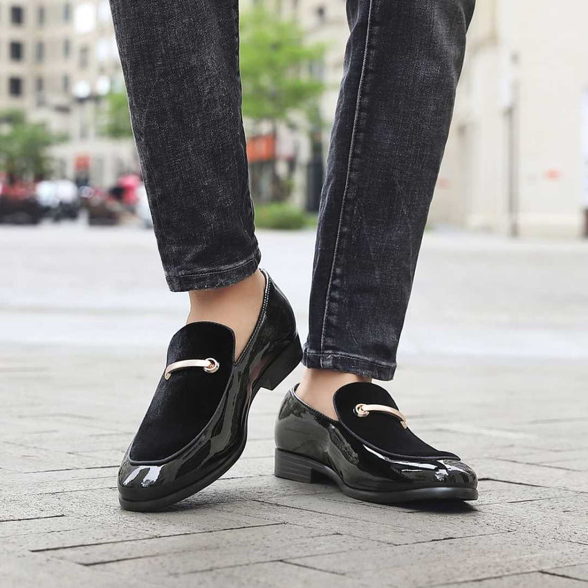 Slipon Black & Gold Men's Loafers Just Men’s Shoes Island Footwear