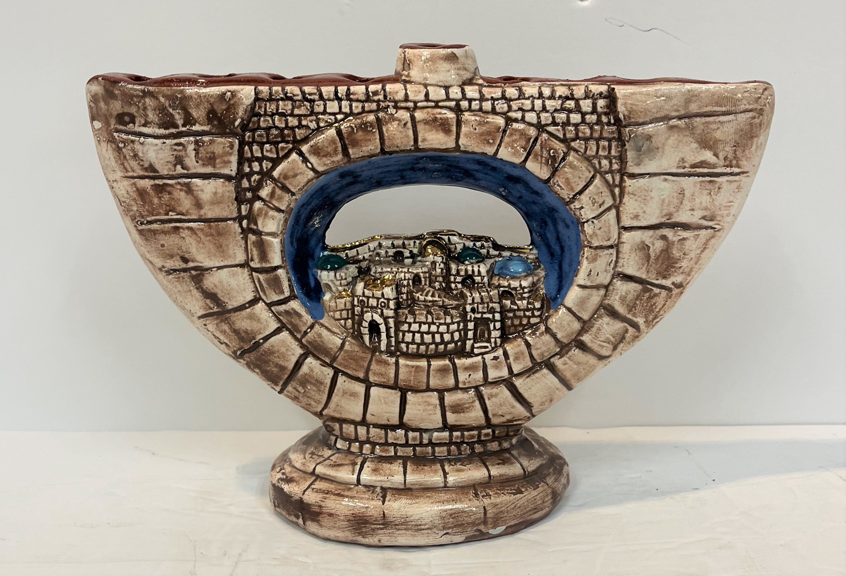 Israel Giftware Design Handcrafted Menorah With Jerusalem Landscape