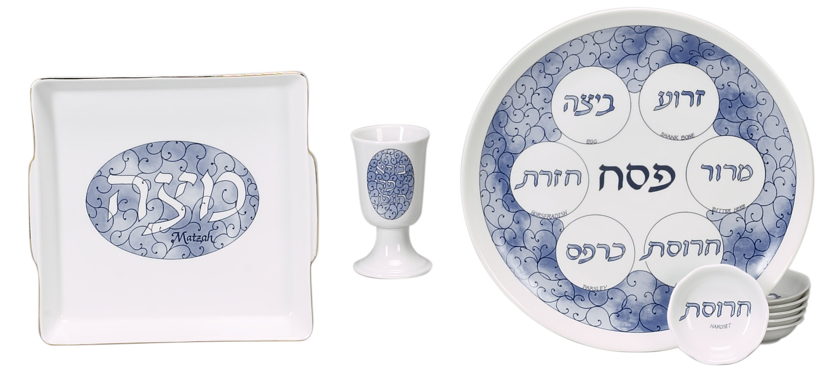 Israel Giftware Design Traditional Porcelain Seder Set in Blue