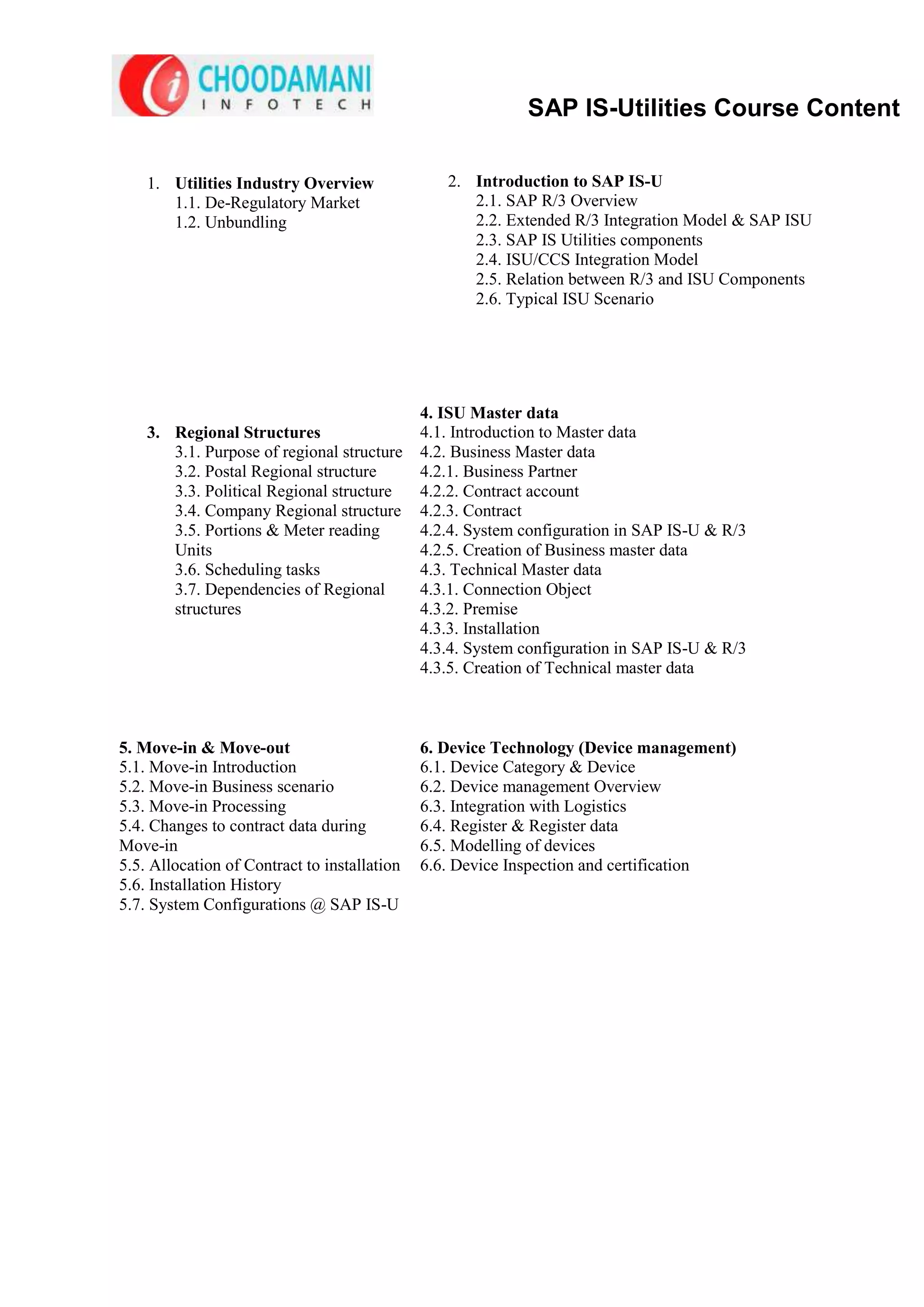 SAP ISU/CCS Course Content PDF