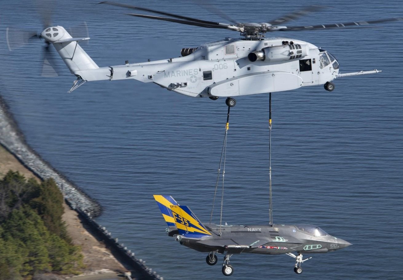 Now I have seen everything, a CH53 carrying a slung F35 while