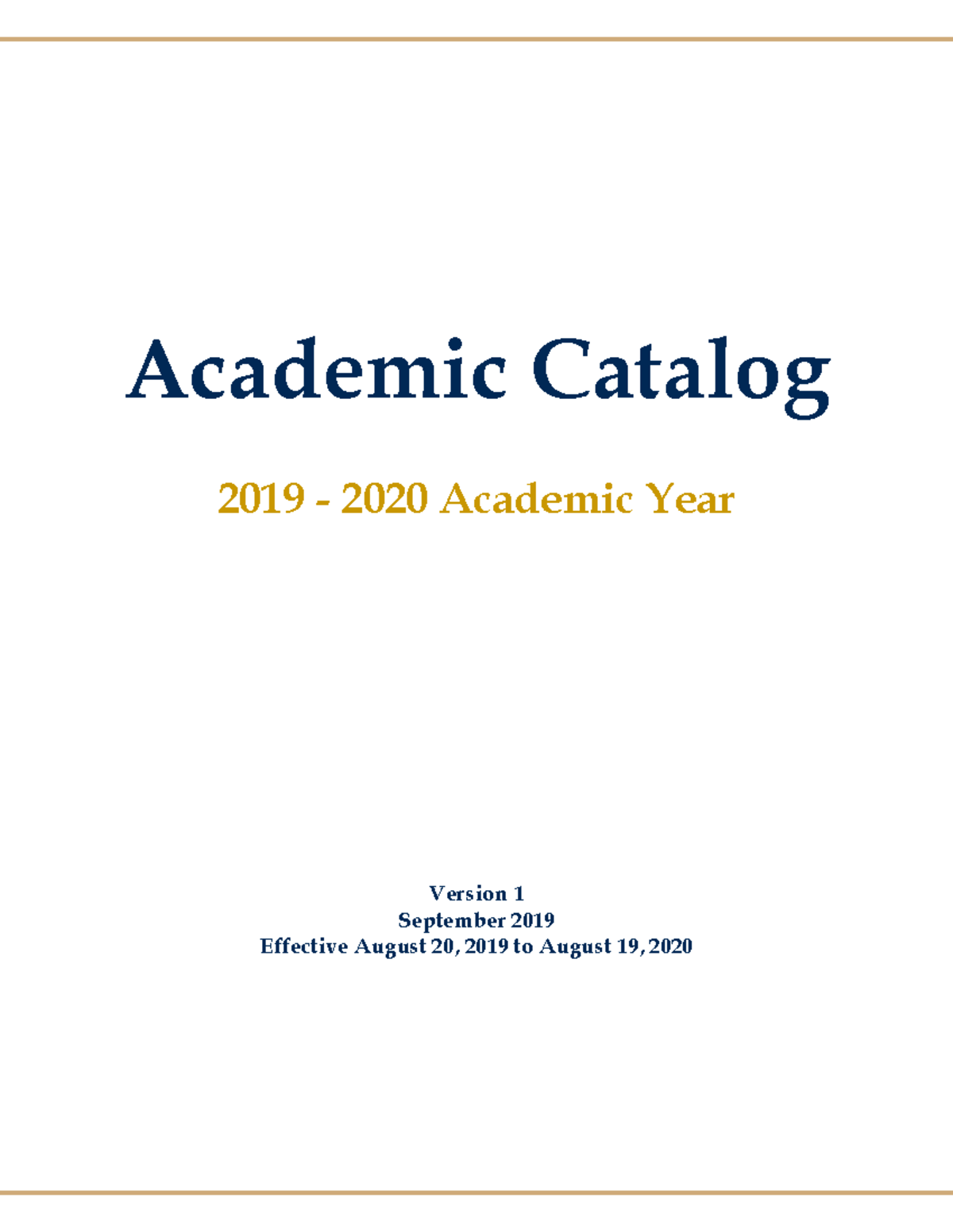 20192020 Academic Catalog Academic Catalog 2019 2020 Academic Year